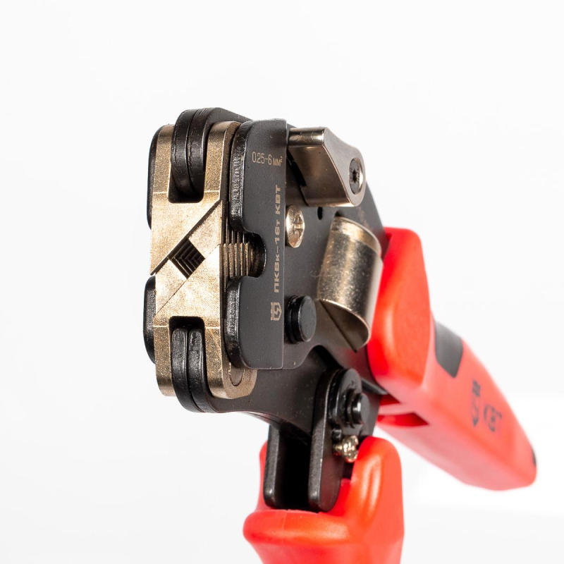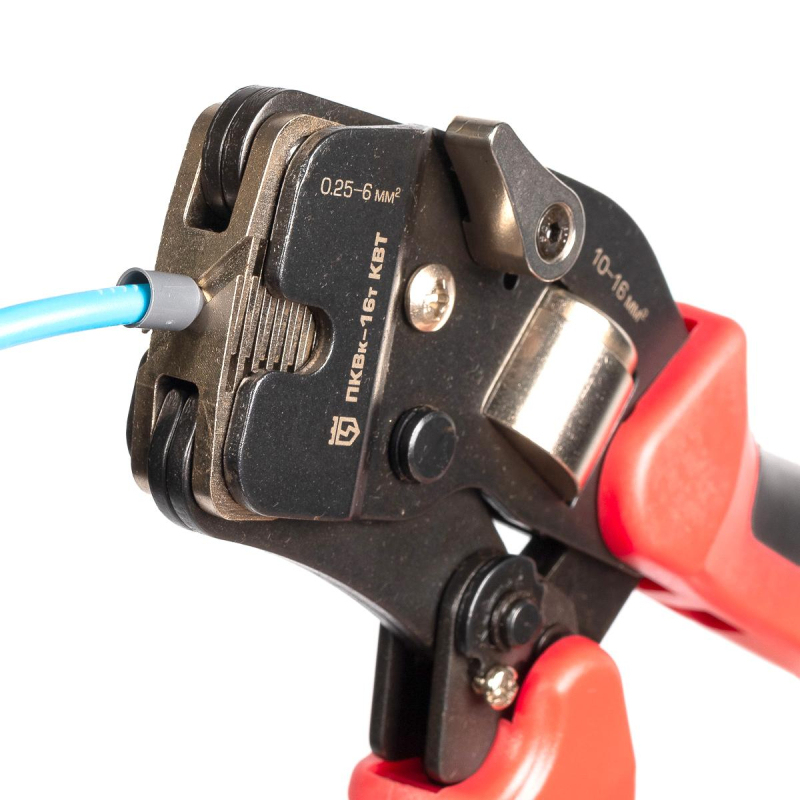 Торцевые пресс-клещи КВТ 74595 оснащены универсальной матрицей, которая позволяет работать с несколькими размерами наконечников. Инструмент легко регулируется под конкретный диаметр, имеется переключатель прижимного усилия матрицы. Удобные рукоятки с упорами обеспечивают достаточную передачу усилия. Храповый механизм используется для равномерной опрессовки от начала и до конца операции. Преимущество инструмента заключается в небольшой длине и оптимальном наклоне головки по отношению к рукояткам. Диапазон сечений втулочных наконечников: НШВИ, НШВ: 0.25–16 кв.мм. НШВИ (2): 2×0.5–2×10 кв.мм.Внешний вид и/или характеристики товара могут быть изменены производителем в соответствии с производственным процессом.