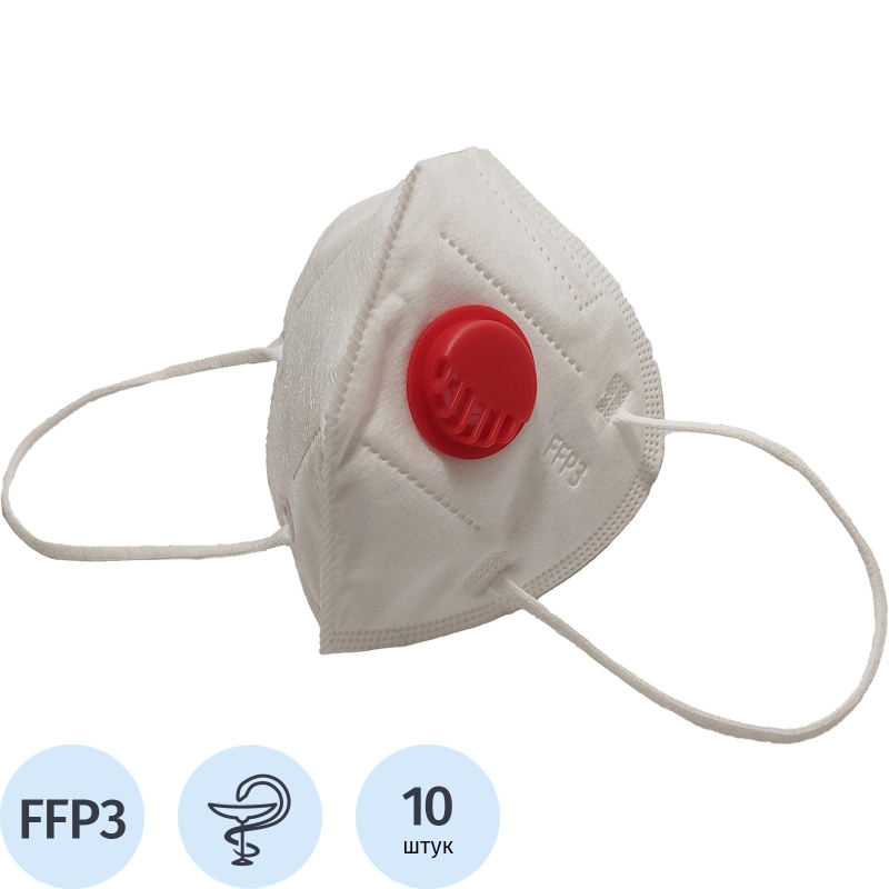 Респиратор KN99 медицинский с клапаном выхода. Класс фильтрующей эффективности: FFP3 до 50 ПДК. Складной. Количество в упаковке: 10 штук. Маска-респиратор КN99 препятствует попаданию в дыхательные пути пыли, аэрозолей, бактерий, вирусов и других частиц из воздуха, обладает барьерными свойствами для предупреждения внешнего инфицирования человека, а также передачи инфекции от больного в окружающую среду. Маска-респиратор КN99 может обеспечить защиту при возникновении угрозы распространения вирусной и бактериальной инфекций, распространяющихся воздушно-капельным путем из-за своей анатомической формы, которая плотно прилегает к лицу, закрывая рот, нос, подбородок, и имеет регулируемый носовой фиксатор. По сторонам маски припаяны мягкие тянущиеся фиксирующие резинки. Конструктивные особенности формы КN99 делают ее универсальной и подходящей ко всем формам и размерам лица, обеспечивают достаточное пространство для комфортного ношения и низкое сопротивление дыханию при большой поверхности фильтрующего материала, занимает очень мало места в сложенном виде. Маска-респиратор КN99 представляет собой многослойное (6 слоев) комбинированное нестерильное одноразовое медицинское изделие из нетканых материалов с комбинацией нетканых материалов для обеспечения необходимого уровня фильтрации в % твердых частиц в воздухе, которое состоит из внешних слоев (наружный и прилегающий к лицу), выполненных из нетканого гипоаллергенного материала Спанбонд, и внутренних слоев (5,6 слоя в зависимости от исполнения) - из нетканого фильтрующего материала ES Hot / Спанлейс (фильтрующая ткань) / нетканого фильтрующего материала Мельтблаун (фильтрующая ткань). Маски могут применяться пациентом или медицинским персоналом на территории медицинских организаций и за их пределами, а также любым лицом в местах массового скопления людей для профилактики заражения инфекционными заболеваниями, передающихся воздушно-капельным путем. По потенциальному риску применения изделие относится к изделиям медицинского назначения класса 1 по ГОСТ Р 51609 и согласно приказу Министерства здравоохранения Российской Федерации от 6 июня 2012 г. № 4н "Об утверждении номенклатурной классификации медицинских изделий". Маска является медицинским издели##м однократного применения. Маска нестерильна и не подлежит стерилизации и дезинфекции. Маска относится к типу I по ГОСТ Р 58396. Маска относятся к типу KN99 по GB 2626. Изделие в процессе эксплуатации устойчиво к климатическим воздействиям согласно исполнению УХЛ4.2 по ГОСТ Р 50444. В зависимости от воспринимаемых механических воздействий маска относится к группе 3 по ГОСТ Р 50444. В зависимости от возможных последствий отказа в процессе использования маски относятся к классу Г5 по ГОСТ Р 50444.