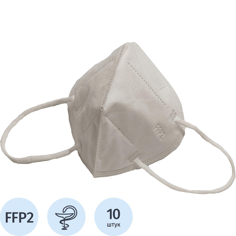 Респиратор KN95 медицинский без клапана. Класс фильтрующей эффективности: FFP2 до 12 ПДК. Складной. Количество в упаковке: 10 штук. Маска-респиратор КN95 препятствует попаданию в дыхательные пути пыли, аэрозолей, бактерий, вирусов и других частиц из воздуха, обладает барьерными свойствами для предупреждения внешнего инфицирования человека, а также передачи инфекции от больного в окружающую среду. Маска-респиратор КN95 может обеспечить защиту при возникновении угрозы распространения вирусной и бактериальной инфекций, распространяющихся воздушно-капельным путем из-за своей анатомической формы, которая плотно прилегает к лицу, закрывая рот, нос, подбородок, и имеет регулируемый носовой фиксатор. По сторонам маски припаяны мягкие тянущиеся фиксирующие резинки. Конструктивные особенности формы КN95 делают ее универсальной и подходящей ко всем формам и размерам лица, обеспечивают достаточное пространство для комфортного ношения и низкое сопротивление дыханию при большой поверхности фильтрующего материала, занимает очень мало места в сложенном виде. Маска-респиратор КN95 представляет собой многослойное (6 слоев) комбинированное нестерильное одноразовое медицинское изделие из нетканых материалов с комбинацией нетканых материалов для обеспечения необходимого уровня фильтрации в % твердых частиц в воздухе, которое состоит из внешних слоев (наружный и прилегающий к лицу), выполненных из нетканого гипоаллергенного материала Спанбонд, и внутренних слоев (5,6 слоя в зависимости от исполнения) - из нетканого фильтрующего материала ES Hot / Спанлейс (фильтрующая ткань) / нетканого фильтрующего материала Мельтблаун (фильтрующая ткань). Маски могут применяться пациентом или медицинским персоналом на территории медицинских организаций и за их пределами, а также любым лицом в местах массового скопления людей для профилактики заражения инфекционными заболеваниями, передающихся воздушно-капельным путем. По потенциальному риску применения изделие относится к изделиям медицинского назначения класса 1 по ГОСТ Р 51609 и согласно приказу Министерства здравоохранения Российской Федерации от 6 июня 2012 г. № 4н "Об утверждении номенклатурной классификации медицинских изделий". Маска является медицинским изделием одн##кратного применения. Маска нестерильна и не подлежит стерилизации и дезинфекции. Маска относится к типу I по ГОСТ Р 58396. Маска относятся к типу KN95 по GB 2626. Изделие в процессе эксплуатации устойчиво к климатическим воздействиям согласно исполнению УХЛ4.2 по ГОСТ Р 50444. В зависимости от воспринимаемых механических воздействий маска относится к группе 3 по ГОСТ Р 50444. В зависимости от возможных последствий отказа в процессе использования маски относятся к классу Г5 по ГОСТ Р 50444.