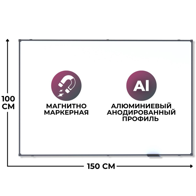 Стильная магнитно-маркерная доска Attache BlackFrame, 100x150 см, в черной алюминиевой раме. Настенная односекционная белая, без линовки. В основании доски прочная сотовая панель из картона толщиной 9,5 мм. Толщина металла 0,3 мм. Лаковое покрытие. Рама шириной (глубиной) 10 мм с прочными пластиковыми уголками. Магнитно-маркерная доска используется во время презентаций или для отображения материала, который нужно наглядно представить. Металлическая белая глянцевая поверхность позволяет крепить на доску важную информацию с помощью магнитов, использовать бумагу для заметок с клейким краем (стикеры) или писать специальными whiteboard маркерами сухого стирания, которые легко удаляются. Таким образом, на доске удобно размещать информацию, которая часто меняется. Эти доски используются для комфортной работы с информацией в организациях, учебных заведениях и домашних офисах. При удалении записей применяются только специальные губки-стиратели в комбинации со специализированным спреем для более тщательной очистки полотна (см. вкладку 'Расходные материалы'). Для продления срока службы доски рекомендуется использовать фирменные маркеры и губки. Соблюдение правил ухода и эксплуатации способно обеспечить срок службы рабочей поверхности магнитно-маркерной доски более 10 лет. В комплекте съемная полка для маркеров, набор для навесного крепления, инструкция по установке. Расположение горизонтальное. Страна-производитель - Россия. Поставляется готовой для использования. Не требует дополнительных манипуляций по отделению защитных слоев с пишущих поверхностей.