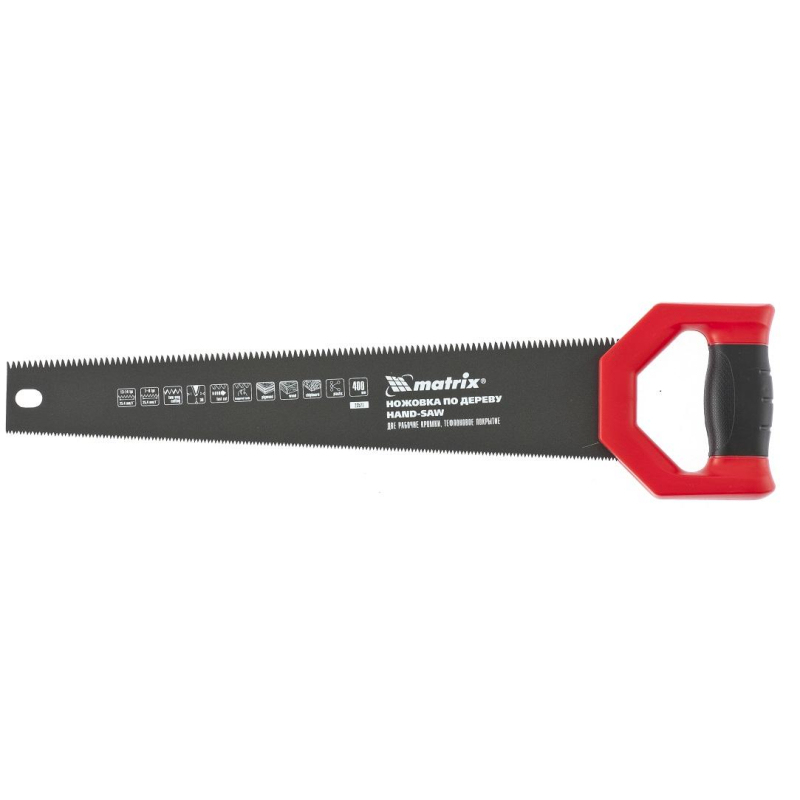 Ножовка Matrix по дереву 400 мм с 3D заточкой (23571) стандартная, без дополнительной комплектации, с широким полотном, полотно ножовки изготовлено из высококачественной стали 65 Mn. Тефлоновое покрытие защищает от коррозии и уменьшает трение полотна при пилении. Полотно имеет две рабочие стороны. 12 TPI-прямой зуб с двумя режущими кромками обеспечивает чистый и точный рез. 7 TPI-трехгранная заточка зубьев '3D' обеспечивает чистый и быстрый рез. Двухкомпонентная рукоятка.Внешний вид и/или характеристики товара могут быть изменены производителем в соответствии с производственным процессом.