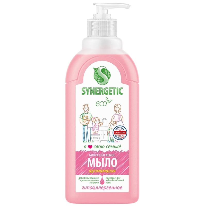 Жидкое мыло Synergetic "Аромамагия" с эффектом увлажнения, гипоаллергенное, 0,5 л. Назначение: Биоразлагаемое жидкое мыло Synergetic "Аромамагия" подходит для бережной очистки рук и тела от любых загрязнений. Мягкие биоразлагаемые тензиды, полученные из растительных масел, превосходно удаляют загрязнения кожи, не вызывая ее раздражения. Натуральный растительный глицерин в составе мыла защищает кожу от сухости и обеспечивает антисептический эффект, благодаря антибактериальной активности. Мультифункциональный компонент софоролипид заботится о микробиоме кожи. Гипоаллергенная отдушка на основе эфирных масел герани, нероли, жасмина, розы придает средству приятный цветочный аромат, который подходит даже для людей с чувствительной кожей. Пищевой краситель в низких концентрациях придает средству нежный розовый оттенок. Жидкое мыло подходит для септических установок. Попадая в среду септика, оно "понятно" для микроорганизмов и без труда распадается на простые соединения. Способ применения: Нанести небольшое количество на влажную кожу, вспенить, смыть водой. Меры предосторожности: беречь от детей, при попадании средства в глаза промыть водой. Использовать строго по назначению. Состав: Aqua (подготовленная вода с ионами серебра); Sodium Laureth Sulfate (ПАВ из пальмового масла); Sodium Lauroamphoacetate (мягкий ПАВ из пальмового масла);PEG-4 Rapeseedamide (солюбилизатор из рапсового масла); Glycerin (увлажняющий компонент растительного происхождения); Sea Salt (морская соль); Citric Acid (лимонная кислота растительного происхождения); Candida Bombicola/Glucose/Methyl Rapeseedate Ferment (ферментированный ПАВ из пшеницы и рапсового масла); Nonallergic Parfume with Natural Oils: Geranium Oil, Neroli Oil, Jasmine Oil, Rose Otto Oil (гипоаллергенная отдушка с натуральными эфирными маслами герани, нероли, жасмина, розы); Food Dye Carmoisine (пищевой краситель); Sodium Benzoate (природный консервант). Условия хранения: Хранить при температуре от 5 до 25°C вдали от нагревательных приборов. Под воздействием солнечных лучей возможно изменение цвета. Срок годности: 2 года с даты изготовления.