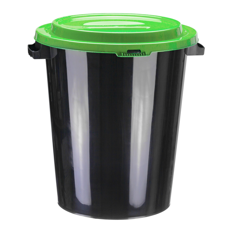 Бак для отходов 40 л пластиковый. Бак емкостью 40 литров выполнен из пластика черного цвета с зеленой крышкой. Можно использовать на дачных участках для хранения поливочной воды, мусора, компоста, в качестве емкости для сыпучих строительных материалов. Отличается высокой прочностью, устойчив к ударам, легко очищается, не сохраняет нежелательных запахов. На корпусе бака предусмотрены ручки для удобства транспортировки. Съемная крышка обеспечивает плотное закрывание. Внутри бака есть мерная шкала. Рекомендуемый диапазон температур для использования от 0 °С до 40 °C, устойчив к воздействию неагрессивных химических веществ. Высота бака: 50 см (с крышкой), 47 см (без крышки). Диаметр: 38 см (верхняя часть), 31 см (основание). Ширина с ручками: 47 см. Вес: 1,46 кг.