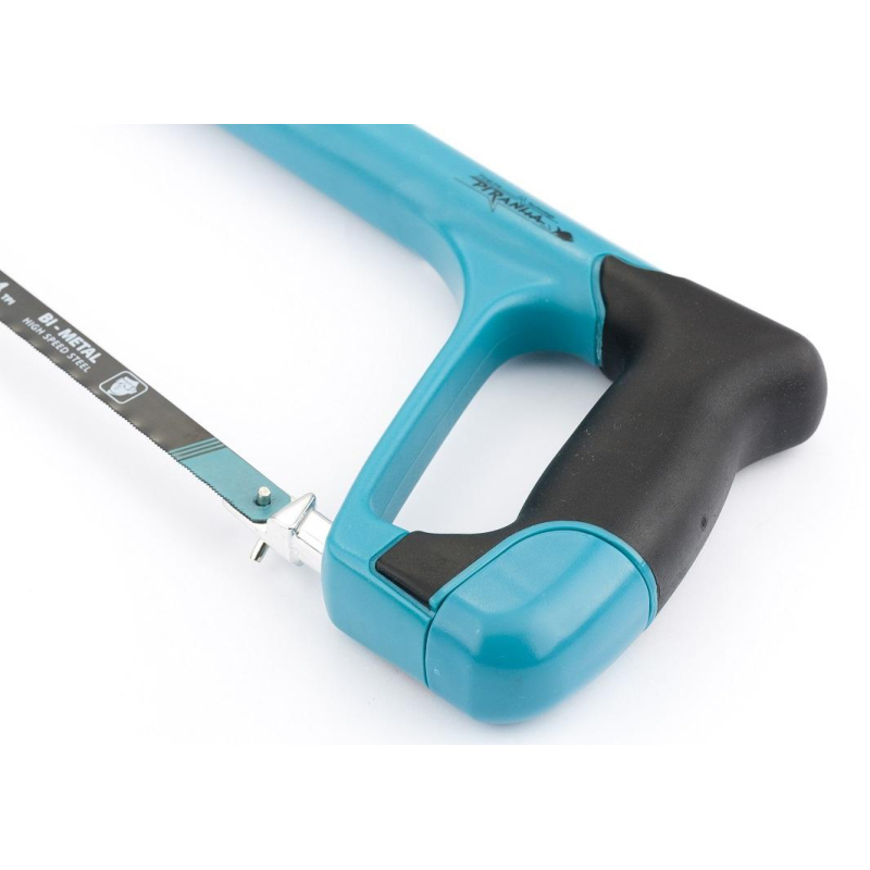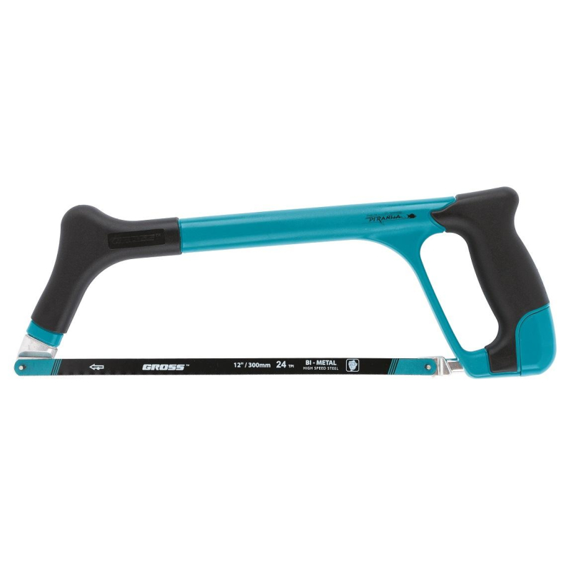 Ножовка Gross по металлу 300 мм с металлопластиковой рамой (77602) лучковая, предназначена для проведения слесарных работ (резки профильного металла, труб и пр.). Трехкомпонентная металлопластиковая рама со стальным сердечником позволяет устанавливать полотно под углом 45° и 90°. Обрезиненная рукоятка удобно и надежно фиксируется в руке, тем самым повышая эффективность инструмента в работе. Скрытый в рукоятке винтовой механизм обеспечивает оптимальное натяжение полотна (150 KGF/30000 PSI) для получения прямого и аккуратного пропила. Ножовка комплектуется биметаллическим полотном с зубьями из быстрорежущей стали. Длина полотна 300 мм, шаг зуба 24 TPI (24 зуба на дюйм, 1 дюйм = 2.54 см).Внешний вид и/или характеристики товара могут быть изменены производителем в соответствии с производственным процессом.