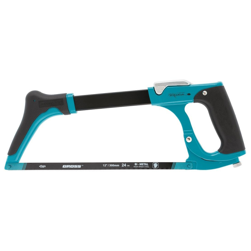 Ножовка Gross по металлу 300 мм с механизмом натяжения полотна (77604) лучковая, с дополнительной рукоятью на передней части, специальной формы для снижения усталости руки при работе с инструментом. Рычажный механизм обеспечивает максимальное натяжение полотна для получения прямого, точного и аккуратного пропила. Натяжение полотна 230 KGF/45000 PSI. Конструкция рамки ножовки позволяет устанавливать полотно под углами 45° и 90°. Оснащена биметаллическим полотном, зубья которого выполнены из быстрорежущей стали.Внешний вид и/или характеристики товара могут быть изменены производителем в соответствии с производственным процессом.