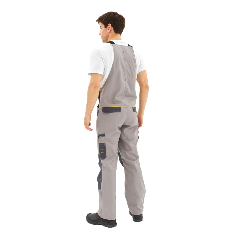 Спецодежда летняя костюм мужской л31-КПК (куртка+полукомбинезон). Размер: 56-58. Рост: 182-188. Цвет: светло-серый/серый. Состав ткани: 65% полиэстер, 35% хлопок. Плотность: 240 г/кв.м. Куртка прямого силуэта. Полочки с отрезными кокетками из ткани основного цвета и кантом желтого цвета, нагрудными накладными карманами из ткани отделочного цвета. Нагрудный карман правой полочки имеет дополнительный карман на застежку молния с клапаном на контактную ленту 25 мм и петлей. Нагрудный карман левой полочки имеет дополнительный объем и клапан на застежку контактная лента 25 мм. Нижние карманы куртки накладные, сложные, имеют дополнительный объем, двойной вход сверху и сбоку (листочка) и клапана из ткани основного цвета на застежку контактная лента 25 мм. Спинка с кокеткой отделочного цвета, нижняя часть спинки с боковыми складками для объема. Рукава втачные с манжетами и шлицей в нижней части локтевого шва с притачной планкой отделочного цвета , застежка манжет на контактную ленту. Рукав 4 шовный со вставками из ткани отделочного цвета. Воротник отложной. Застежка борта на молнию с ветрозащитным клапаном на контактную ленту 25 мм и кнопку на поясе и в верхней части планки. Низ куртки на поясе. Пояс с двумя патами, регулирующими ширину пояса, застежка пат на кнопку. Полукомбинезон прямого силуэта. Грудка отрезная с накладным фигурным карманом с клапаном отделочного цвета застежка клапана на контактную ленту. Передние половинки со сложными боковыми карманами и наколенниками. Наколенники выполнены из ткани отделочного цвета, имеют вытачки для свободы движения и карман для защитного наколенника с застежкой на контактную ленту 25 мм. Задние половинки имеют накладные карманы с фигурными клапанами основного цвета с застежкой на контактную ленту 25 мм. Бретели полукомбинезона с закрытой резинкой, застежка бретелей на пряжки - фастексы. Боковая застежка на 2 петли-пуговицы. Сферы применения: автомобильная, ЖКХ, легкая промышленность, логистика, нефтегазовая, озеленение, сельское хозяйство, строительство.