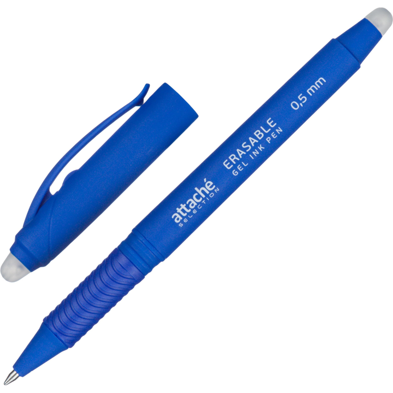 Ручка гелевая Attache Selection обладает уникальными обесцвечивающимися термо-чернилами. Для удаления надписи необходимо потереть ее специальным ластиком, встроенным в колпачок или тыльную часть корпуса ручки. При письме и стирании ручка не повреждает структуру бумаги, делая исправления незаметными. Ручка не рекомендована для использования в деловых документах. Рифленая резиновая манжетка и корпус с покрытием soft touch обеспечивают удобный захват ручки и комфорт во время письма. Диаметр шарика - 0,7 мм. Толщина линии письма - 0,5 мм. Длина письма - 250 м. Сменные стержни не представлены в ассортименте компании.