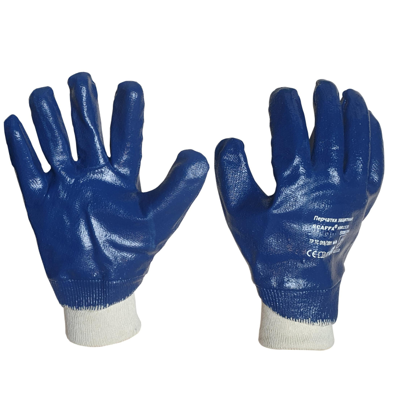 Перчатки рабочие Scaffa NBR1530 синего цвета. Основа: хлопок (джерси). Покрытие: нитрил (полный облив). Размер: 10, XL. Длина: 250 мм. Манжет: трикотажный (резинка). Количество в упаковке: 1 пара. Количество упаковок в транспортном коробе: 120. Высокие показатели защиты при длительном сроке службы. Отличное сопротивление истиранию и разрыву, стойкость к проколу и порезу. Ограниченная стойкость к слабым растворам кислот, МБС, герметичны, рекомендованы для продолжительного ношения. Вид защиты: от нефти и нефтепродуктов, механическая. Виды работ: тяжелые, общепроизводственные, монтажные, ремонтные. Условия рабочей среды: сухие/влажные/масло. Сферы применения: нефтегазовая промышленность, строительство, ЖКХ, ремонт, логистика и склад, универсальные. Защитные свойства по EN388: 2016: 4111X.