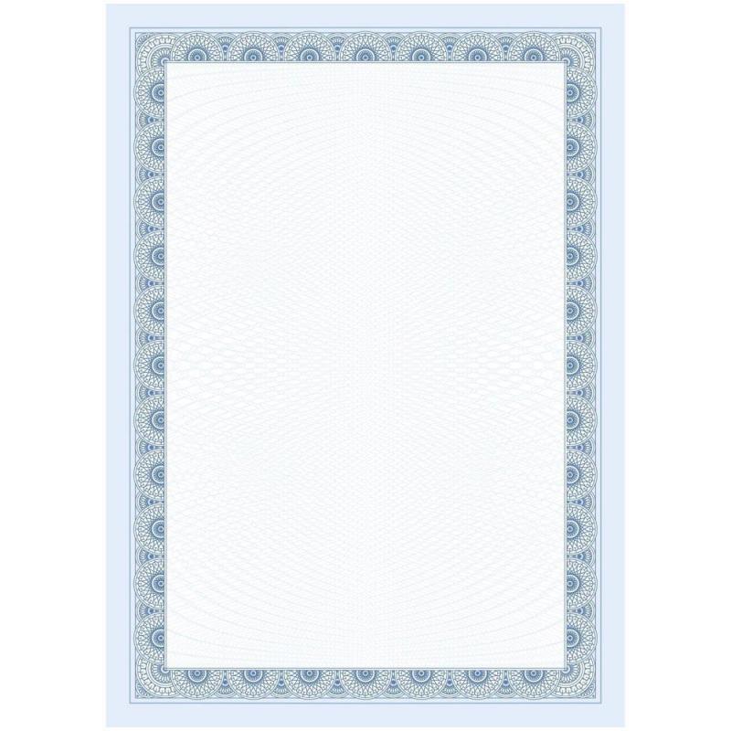 Бланк с двойной сине-голубой рамкой, без надписей предназначен для награждения участников мероприятий, поздравлений коллег и партнеров, сертификатов прохождения курсов и семинаров, используется, когда текст и надписи не по шаблону. Формат: А4. Изготовлен из мелованной бумаги плотностью 250 г/кв.м. Подходит для печати на принтере.Поставляется упаковками по 20 штук.