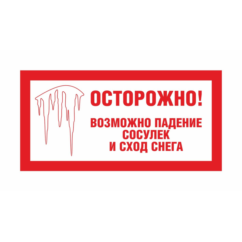 Знак безопасности "Осторожно сосульки" предупреждает о возможном падении снега и сосулек с кровли и информирует о должной осмотрительности граждан. Материал пластик 2 мм + световозвращающая пленка. Знак без подвесов и креплений. Формат знака: 200х400 мм.