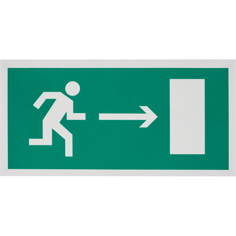 Эвакуационный знак безопасности (наклейка) 'Направление к эвакуационному выходу направо'. Код знака: Е03. Место размещения (установки) и рекомендации по применению: на стенах помещений для указания направления движения к эвакуационному выходу. Используемые материалы: самоклеящаяся пленка ПВХ. Формат: 150x300 мм. Упаковка 10 шт.