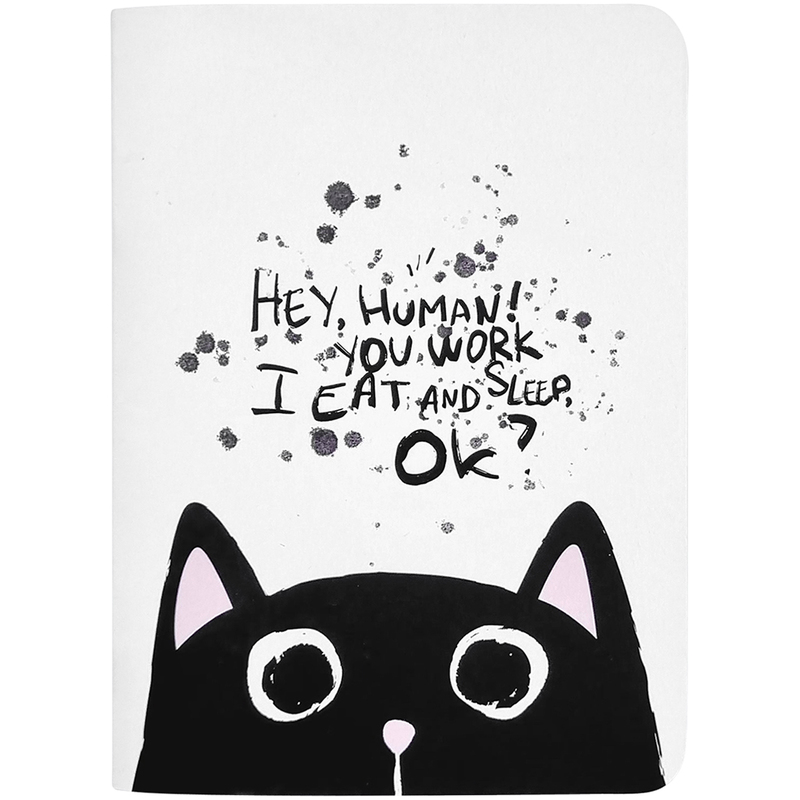 В поистине бунтарской коллекции "Hey Human" от Be Smart вы найдете наших любимых домашних дебоширов, уставших от своего человека, вечно путающегося под ногами.Карманный блокнот А6 формата (105х140 мм) на скрепке легко уместится даже в самый небольшой рюкзак или сумочку, чтобы в нужный момент можно было сделать важные заметки.Обложка из мягкого, но прочного картона плотностью 230 г/кв.м с печатью цветного принта с внутренней стороны имеет приятную ламинацию, которая делает изделие прочнее и долговечнее. А скругленные уголки позволят мягкой обложке дольше сохранять первозданный вид.Внутренний блок в клетку со скругленными уголками на 32 листа (64 страницы) из высококачественной бумаги белизной 100% и плотностью 65 г/кв.м.