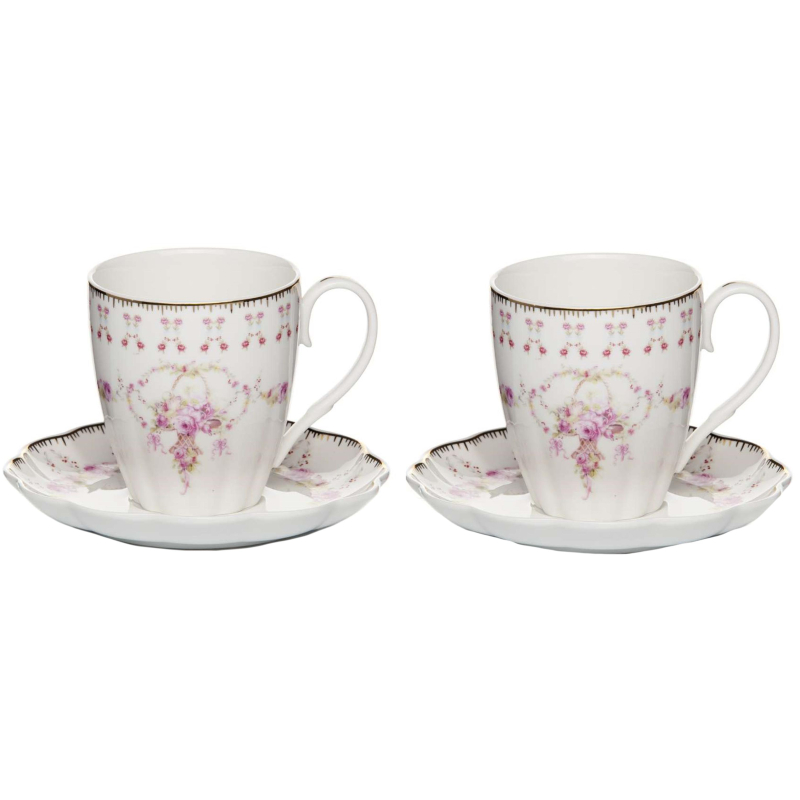 Чайный набор на 2 персоны 250 мл выполнен из высококачественного фарфора. В комплекте 2 чашки, 2 блюдца с рисунком цветы. Несмотря на свою внешнюю хрупкость, каждый из предметов набора обладает высокой прочностью и надежностью. Изделия украшены тонкой золотой каймой. Оригинальный дизайн сделает этот набор изысканным украшением любого стола. Набор упакован в подарочную коробку. Объем чашки: 250 мл. Диаметр чашки (по верхнему краю): 8 см. Высота чашки: 9 см. Размер блюдца: 12х12 см. Возможность мытья в посудомоечной машине: нет. Возможность использования в СВЧ-печи: нет.
