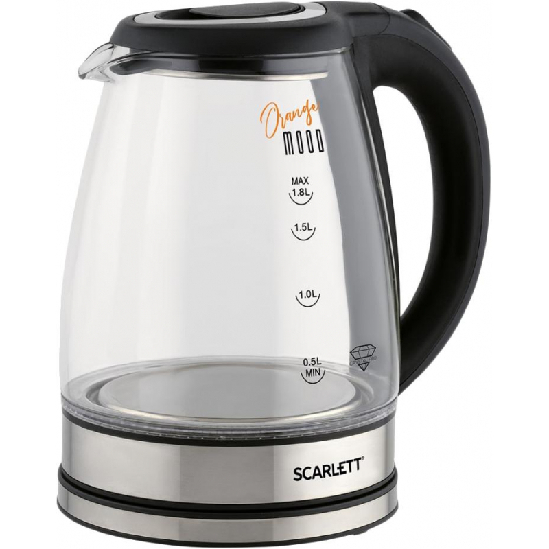 Электрический чайник SC-EK27G36 объемом 1.8 л оснащен традиционной системой открытия крышки. Эргономичная ручка, закрытый нагревательный элемент сделают эксплуатацию прибора еще проще и комфортнее. Внутренняя подсветка позволит наблюдать за завораживающим процессом кипячения. Классический черный цвет корпуса в сочетании с металлической декорацией позволит прибору вписаться в любой интерьер кухни.
