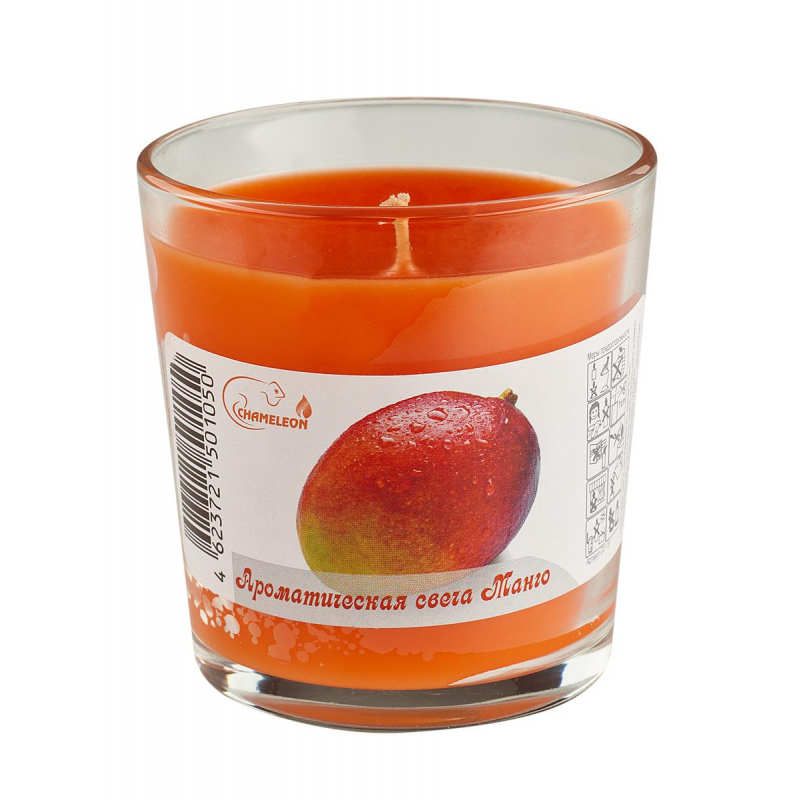 Ароматическая свеча в стакане "Манго" наполнит комнату нежным ароматом манго Свеча безопасна для использования, т.к. находится в стеклянном термостойком стакане, выдерживающим высокую температуру. Аромат: Манго. Время горения: более 30 часов. Размер: 7,9x7,9x8,2 см. Вес: 370-380 г.