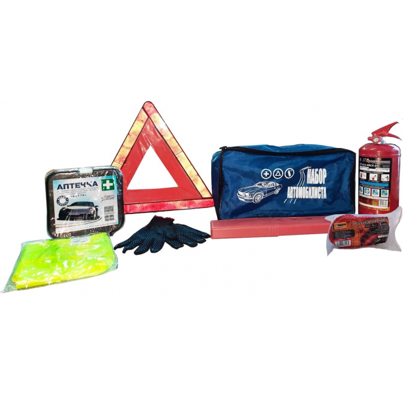 ?Набор автомобилиста Limroy? ?LR-DOR? ?№? ?4 включает в? ?себя самые необходимые принадлежности для прохождения технического осмотра, соответствующие требованиям ГИБДД.? ?Комплектация??:? ?-? ?Аптечка автомобильная (в? ?соответствии с? ?приказом 1008н от? ?08.10.2020 г.? ?Министерства здравоохранения РФ)??;? ?-? ?Огнетушитель порошковый 2 кг? ?ОП-2? ?(ABCE)??;? ?-? ?Знак аварийной остановки в? ?футляре??;? ?-? ?Трос (5 тонн, 2 крюка)??;? ?-? ?Жилет светоотражающий??;? ?-? ?Перчатки х/б??;? ?-? ?Сумка тканевая??.?
