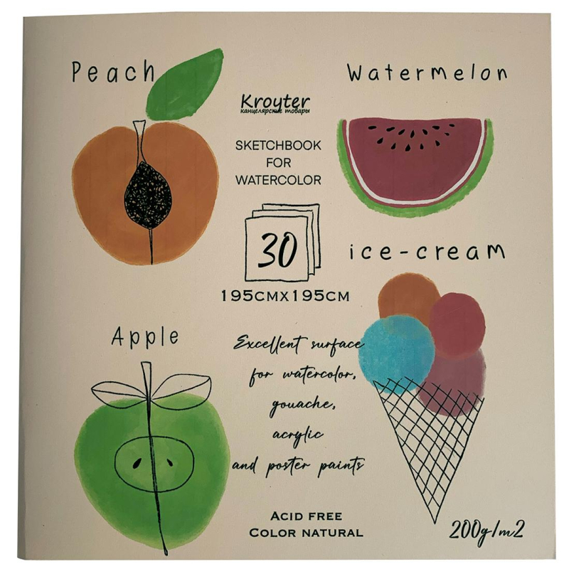 Альбом для рисования акв.Kroyter 30л 195х195,скл,бл.200г,тв.подл,Проф 64669