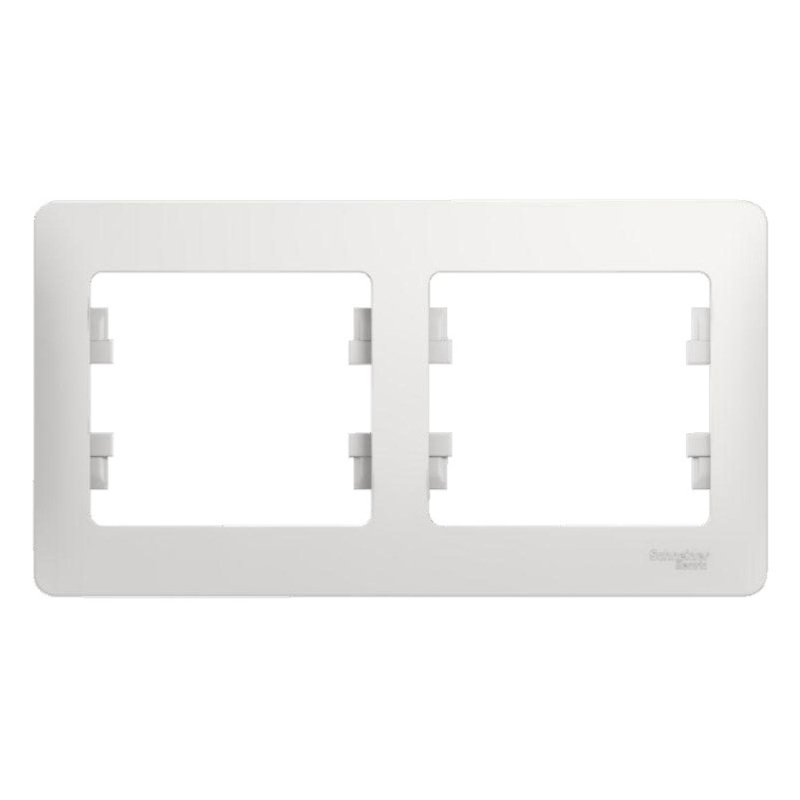 Рамка Schneider Electric Glossa (цвет белый) двухместная. - Устанавливается в горизонтальном положении. - Выполнена из материала PС+ASA, стойкого к УФ-излучению и появлению царапин. - Позволяет гармонично вписать электроустановочное изделие в интерьер помещения.