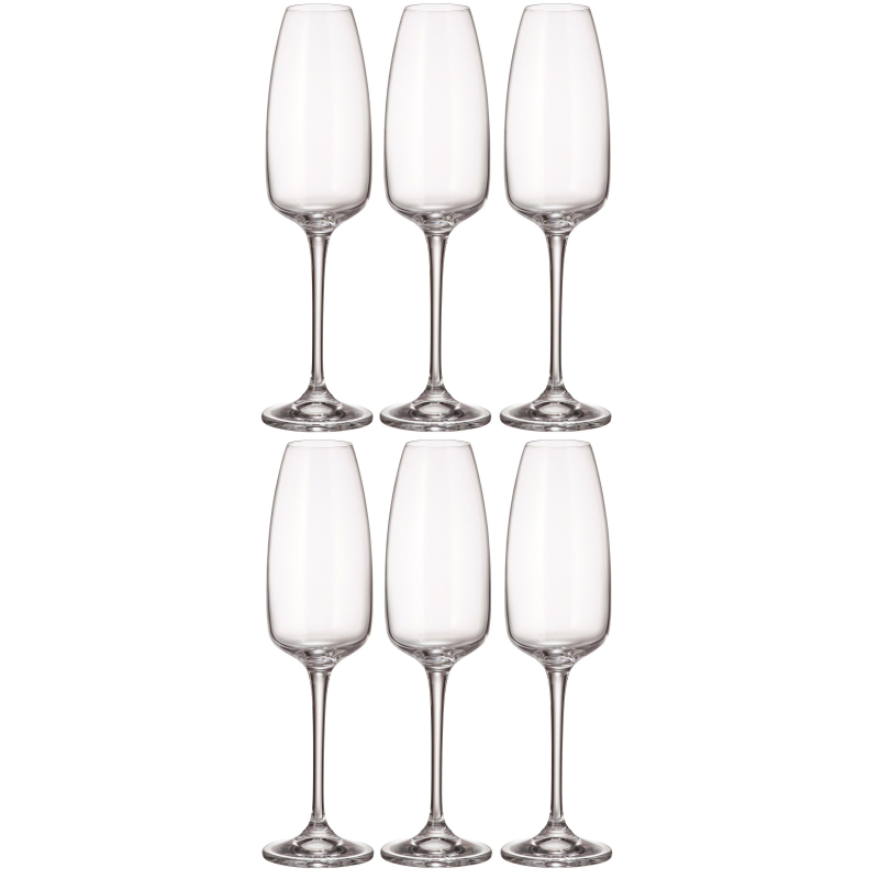 Набор из шести бокалов для шампанского в современном стиле из коллекции Anser. Изготовлены из стекла с добавлением титана, который делает его более прочным и устойчивым к механическим повреждениям, препятствует потускнению стекла после неоднократного использования в посудомоечной машине. Полировка огнем делает бокалы идеально ровными и прозрачными. На основании ножки каждого изделия есть лазерная маркировка логотипа бренда. Бокалы сочетают в себе безупречный стиль и функциональность. Идеально подходят для сервировки стола и станут отличным презентом родным, близким и друзьям. Можно мыть в посудомоечной машине. Не рекомендуется использовать в СВЧ-печи. Объем: 290 мл. Высота: 25 см. Диаметр: 7 см. Упаковка: картонная упаковка. Размер упаковки: 14x24x25 см.