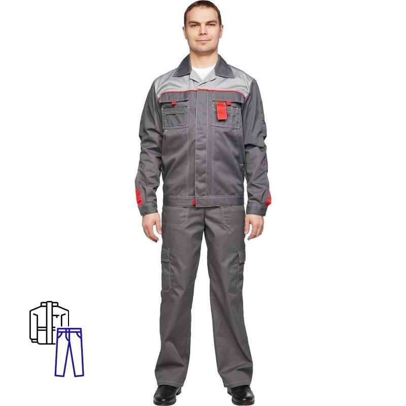 Костюм рабочий летний мужской л10-КБР состоит из куртки и брюк темно-серого цвета со светло-серыми и красными вставками. Размер: 44-46. Рост: 158-164. Изготовлен из смесовой ткани с отделкой ВО (65% полиэстер, 35% хлопок), плотность ткани - 240 г/кв.м. За счет оптимального соотношения хлопка и полиэфирных волокон дают высокие эксплуатационные характеристики, не мнется, костюм держит свою первоначальную форму даже после многократных стирок, не требует глажки, износостойкий. Благодаря матовой поверхности ткани, одежда выглядит презентабельно и аккуратно. Куртка с застежкой на молнию и контактную ленту. Многофункциональные карманы, специальный карман для телефона, окошко для бейджика. На спине куртки складки для свободы движения. Рукава с усилительными налокотниками, защищающими от истирания. Ширина пояса куртки регулируется патой. Брюки с многофункциональными карманами. Костюм обеспечивает защиту от общих производственных загрязнений. Сферы использования: агропромышленный комплекс, жилищно-коммунальное хозяйство, организации торговли, бытовое обслуживание, гостиничный сервис, сервисные службы.