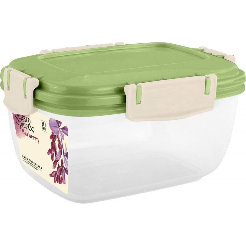 Контейнер Sugar&Spice Barberry пластиковый 450 мл. Контейнер для продуктов Sugar&Spice коллекция Вarberry, с защелками, герметичный, фисташкового цвета, 0,45 л, прямоугольный, прекрасное решение для переноски еды и сохранения свежести продуктов. Крышка с четырьмя защелками и силиконовым уплотнителем обеспечивает герметичность и позволяет продуктам дольше оставаться свежими. Можно использовать в СВЧ-печи, посудомоечной машине и хранить в холодильнике. Фиксируемая штабелируемость позволит сохранить порядок на ваших полках. Размер: 145x107x78 мм.