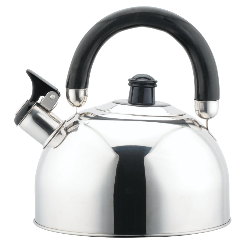Чайник 2,5 литра из нержавеющей стали ТМ Appetite. Чайник оснащен черной пластиковой ручкой. Носик чайника имеет откидной свисток. Чайник Appetite пригоден для использования на всех видах плит, кроме индукционных. Можно мыть в посудомоечной машине.