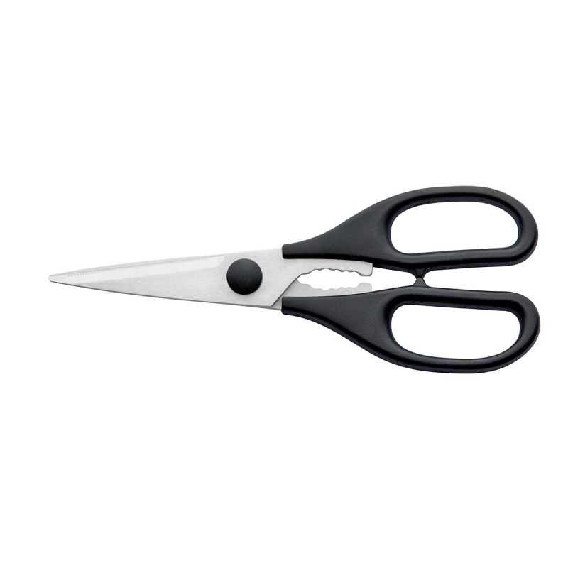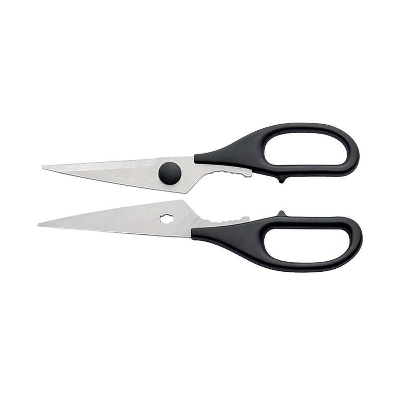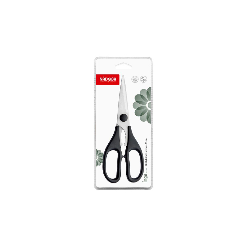 Ножницы кухонные Nadoba Inge 20 см (724112). Ножницы выполнены из высококачественной нержавеющей стали. Встроенный орехокол и открывалка для крышек. Лезвие-скребок для рыбьей чешуи. Разборная конструкция, упрощающая уход. Цвет ручек: черный. Длина ножниц: 20 см. Можно мыть в посудомоечной машине.