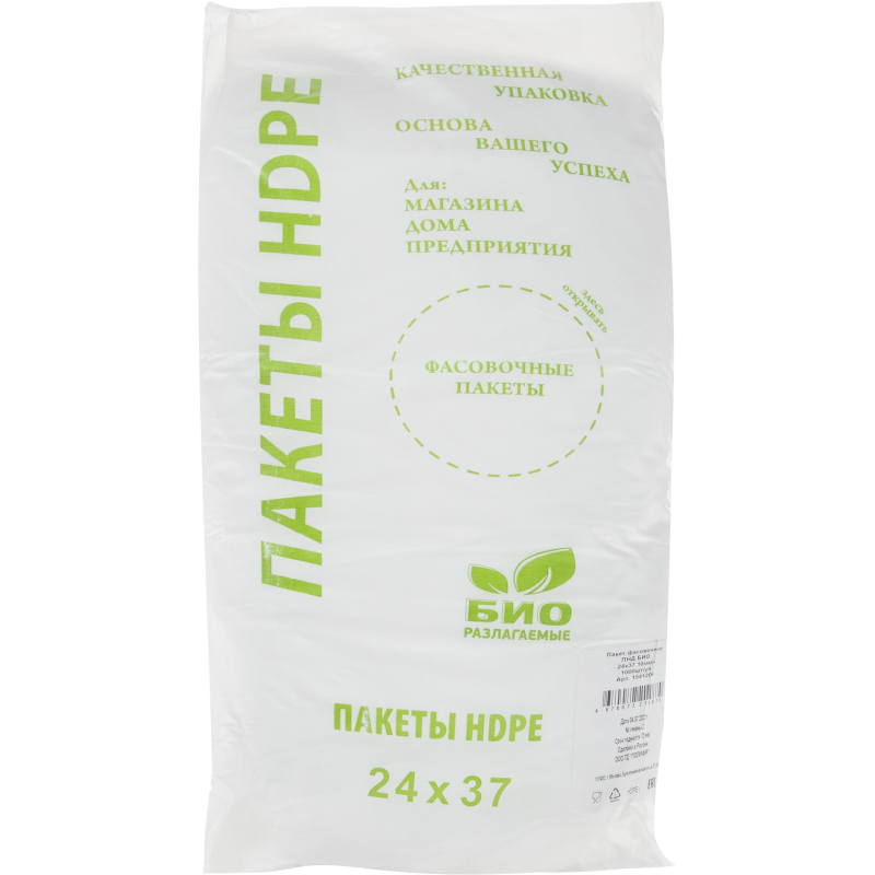 Пакет фасовочный Знак Качества ПНД 10 мкм 24x37 см (1000 штук в упаковке) - экологически чистые полиэтиленовые фасовочные пакеты размером 24x37см с добавлением специальной биодобавки. Нагрузка до 2 кг. Пакеты БИО распадаются при воздействии таких обычных факторов, как температура, солнечный свет, вода, воздух и т. п. и не загрязняют окружающую среду. Полимеры, из которых они изготовлены, сохраняют потребительские свойства в течение всего периода эксплуатации, а затем разрушаются в естественных условиях до низкомолекулярных соединений, способных участвовать в природном круговороте веществ.