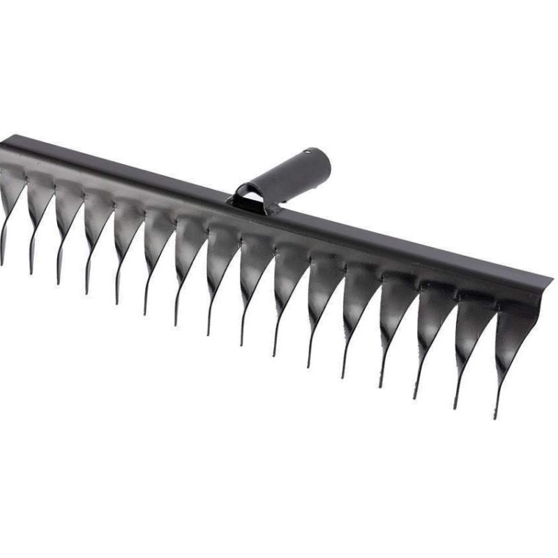 Грабли прямые с витыми зубьями РусТрейд сталь 44 см (без черенка). Грабли РусТрейд - идеальный инструмент для разрыхления и обработки почвы, для сбора садового мусора и опавшей листвы. Зубцы изготовлены из стали. Универсальные грабли подходят для предпосадочной подготовки грунта, а также для других заданий по саду. Количество зубьев: 16. Посадочный диаметр черенка: 30-32 (конус). Ширина рабочей части: 44 см. Длина инвентаря: 8 см.