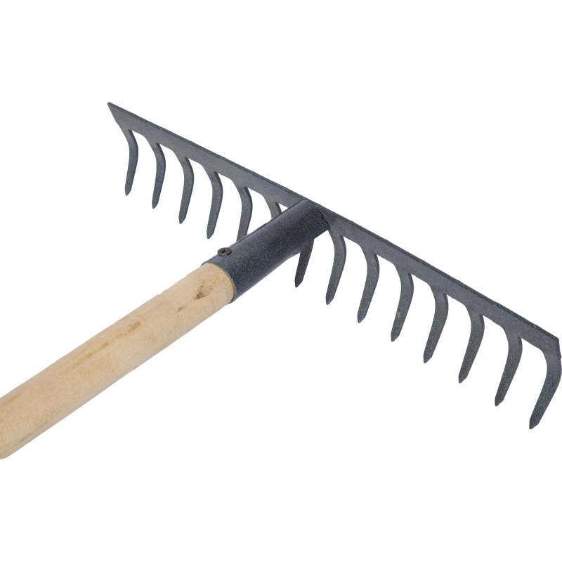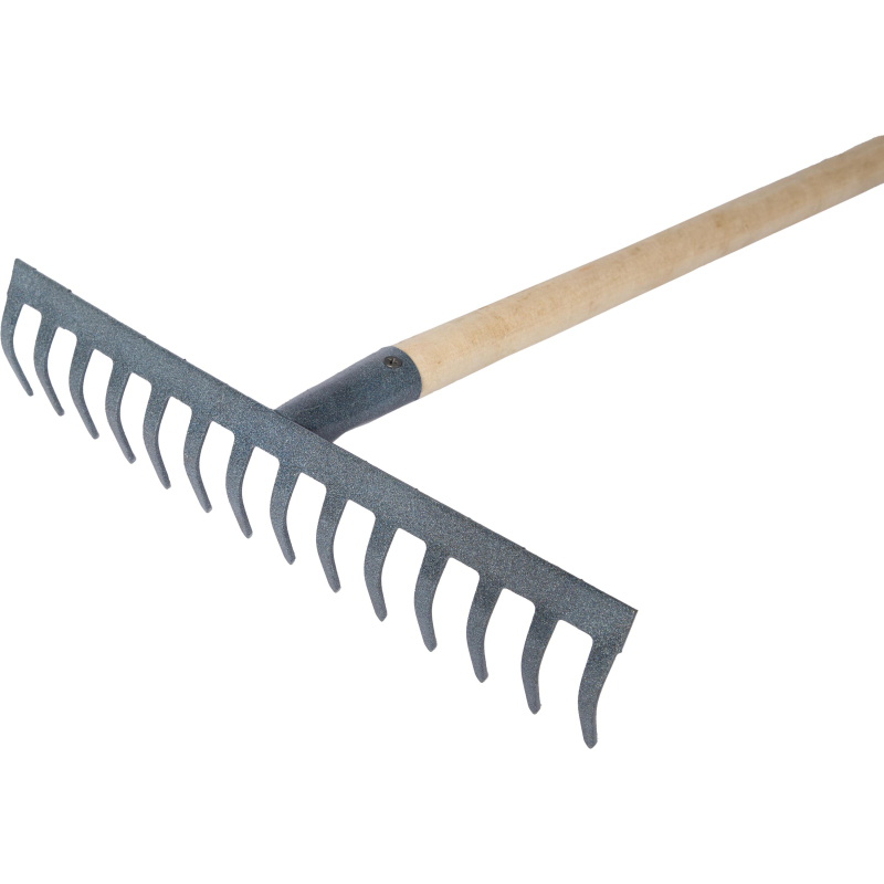Грабли прямые РусТрейд сталь 40 см (с черенком 122 см). Грабли РусТрейд - идеальный инструмент для разрыхления и обработки почвы, для сбора садового мусора и опавшей листвы. Зубцы изготовлены из стали, а черенок - из дерева. Универсальные грабли подходят для предпосадочной подготовки грунта, а также для других заданий по саду. Количество зубьев: 14. Посадочный диаметр черенка: 30-32 (конус). Ширина рабочей части: 40 см. Длина инвентаря: 130 см.