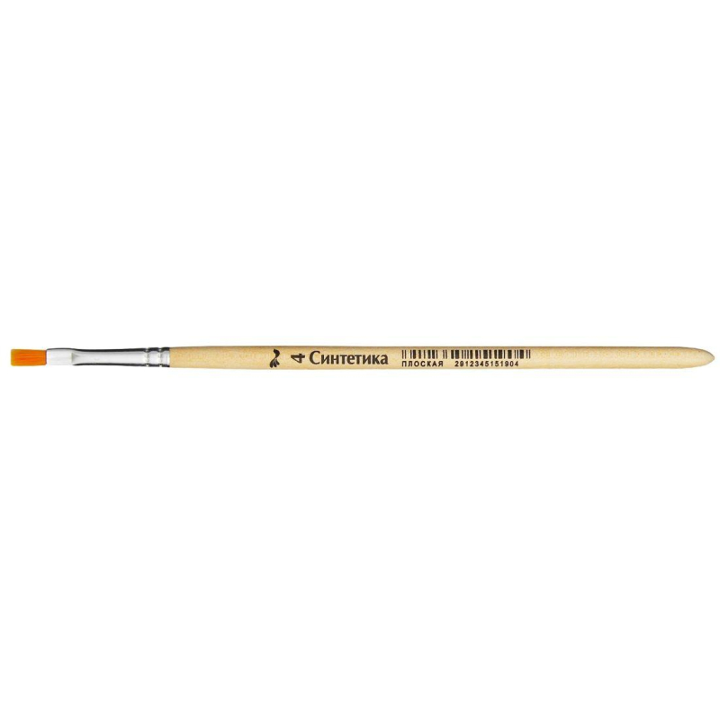 Плоская (контурная) кисть №4. Контурные кисти могут быть использованы для техники масляной живописи, предусматривающей выполнение картины (или ее фрагмента) за один сеанс. Изготовлена из синтетики. Короткая деревянная ручка (14 см). Применяется для работы с гуашью, темперой, акрилом, маслом. Кисть без упаковки.Товар относится к ценовому сегменту "суперэконом". Имеет упрощенные характеристики и более простую упаковку. Отвечает основным требованиям потребления.
