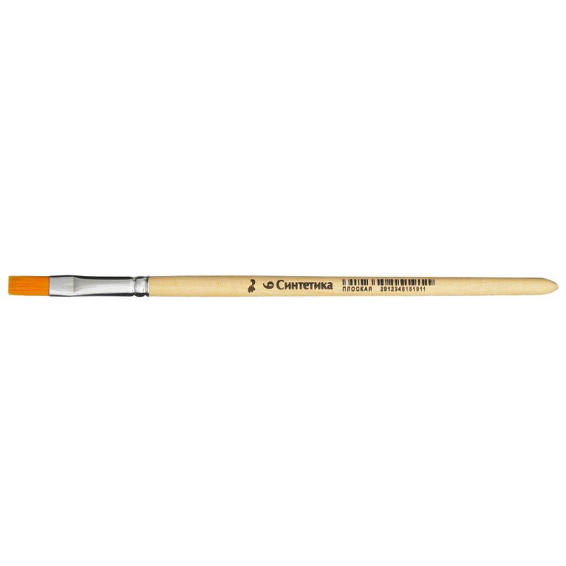 Плоская (контурная) кисть №6. Контурные кисти могут быть использованы для техники масляной живописи, предусматривающей выполнение картины (или ее фрагмента) за один сеанс. Изготовлена из синтетики. Короткая деревянная ручка (14.5 см). Применяется для работы с гуашью, темперой, акрилом, маслом. Кисть без упаковки.Товар относится к ценовому сегменту "суперэконом". Имеет упрощенные характеристики и более простую упаковку. Отвечает основным требованиям потребления.