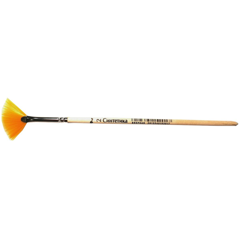 Кисть №2, имеющая негустой пучок в форме веера. С ее помощью удается сделать утонченную цветовую растяжку или смягчить контраст контуров и фактуру. Изготовлена из синтетики. Короткая деревянная ручка (14 см). Применяется для работы с гуашью, темперой, акрилом, маслом. Кисть без упаковки.Товар относится к ценовому сегменту "суперэконом". Имеет упрощенные характеристики и более простую упаковку. Отвечает основным требованиям потребления.