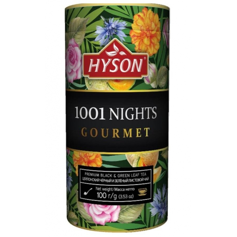 Чай Hyson Gourmet 1001 ночь черный и зеленый, 100г Чай цейлонский премиальный крупнолистовой, уникальная смесь черного чая с зеленым чаем с ароматами и растительными компонентами в жестяной тубе. Этот чай имеет нежный насыщенный цветочный аромат и выразительный бархатный вкус. Состав: 100% цейлонский черный и зеленый чай, лепестки Розы, цветки Василька и Календулы, с добавлением ароматизатора Дыни и Карамели. Способ приготовления: В сухой разогретый чайник насыпать чай из расчета 2 чайные ложки на 200 мл воды, залить чайник горячей водой 76-85 градусов Цельсия и дать настояться 2-3 минуты. Вес: 100 г. Тип упаковки: Жестяная банка. Условия хранения: Хранить в прохладном месте без сильных посторонних запахов, при температуре не выше 20 °C и относительной влажности не более 70%. Срок годности: 36 месяцев. Страна производства: Шри-Ланка.