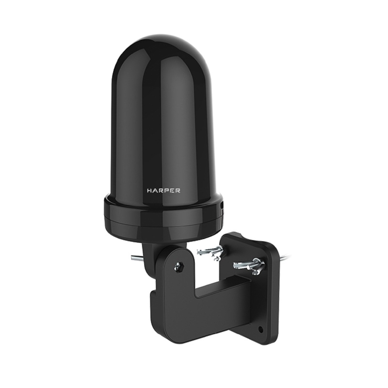 Harper ADVB-2440 - уличная антенна с активным усилителем, обеспечивающим коэффициент усиления до 30 дБ (для диапазона VHF - до 28 дБ, для UHF - до 30 дБ), а шума - не более 3 дБ. Эффективный прием аналоговых и цифровых сигналов (поддерживаются не только российские мультиплексы DVB-T/T2, но и многие другие) возможен в следующих частотах: - 87,5-230 МГц, - 470-862 МГц. В комплект поставки входят крепления для установки Harper ADVB-2440 на линейные опоры и плоские основания (стена, кровля и т.п.). Сферическая форма антенны исключает необходимость поиска наиболее выгодного направления для приема сигнала (не нужно поворачивать Harper ADVB-2440 в сторону ретранслятора) и снижает эффект ветровой нагрузки. Питание встроенного усилителя обеспечивается отдельным адаптером и специальным переходником (для подключения к кабелю), оба входят в комплект. Настоящая антенна является новой специально разработанной модификацией наружной установки, предназначенной для приема цифрового и аналогового, а также HDTV сигналов наземного телевизионного вещания. Она является наилучшим решением для домашней установки и приема цифрового телевизионного вещания. Комплектующие для обеспечения настенного монтажа или монтажа на линейной опоре включелны в комплект поставки.
