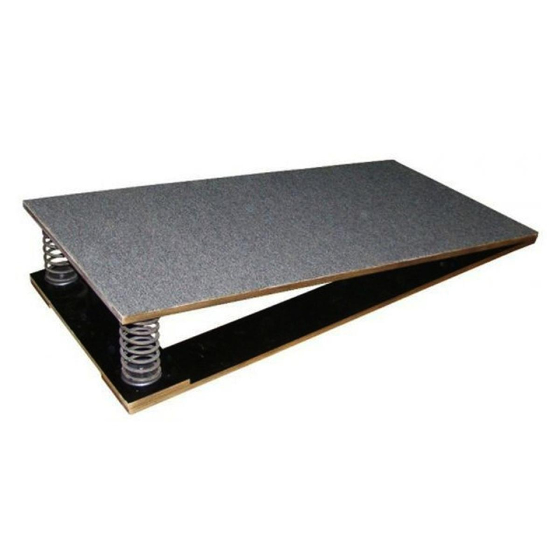 Мостик гимнастический с пружинами предназначен для выполнения гимнастических упражнений, проведения тренировок и в основном используется спортсменами для запрыгивания на снаряд и выполнения опорных прыжков. Технические характеристики: Габаритный размер ДхШхВ, мм: 1200 х 600 х 185. Основа мостика выполнена из фанеры толщиной 15 мм. Верхняя площадка имеет ковровое покрытие, препятствующее скольжению ног. Нижняя часть мостика оснащена прорезиненными подпятниками предотвращающие скольжение мостика на гладких поверхностях. Наличие пружин - 2 шт. Максимальная нагрузка до 120 кг.