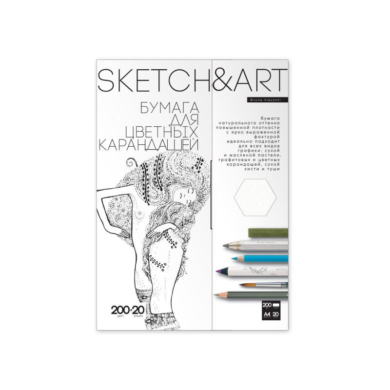 Набор бумаги д/скетчинга SKETCH&ART А4 д/цв.каранд 200г/м2 20л 4-20-148/02