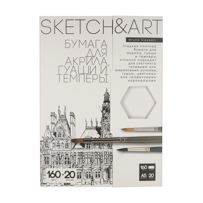 Набор бумаги серии Sketch&Art в папке идеальный вариант для тех, кому важен комфорт, порядок и качество по оптимальной цене. Новый формат папки - это уникальное предложение как для профессионалов, так и для любителей рисования. Закрывающийся клапан не даст листам рассыпаться, а вырубное окошко-шестигранник позволит определить текстуру и качество бумаги не открывая папку. Бархатистое покрытие Soft Touch создает приятное тактильное ощущение, когда папка оказывается в руках ее обладателя и создает защитный слой от воды. 20 листов гладкой бумаги плотностью 160 г/м2 предназначены для рисования акрилом, гуашью, темперой, а также для скетчинга гелевыми или шариковыми ручками, тушью, цветными или чернгорафитными карандашами.