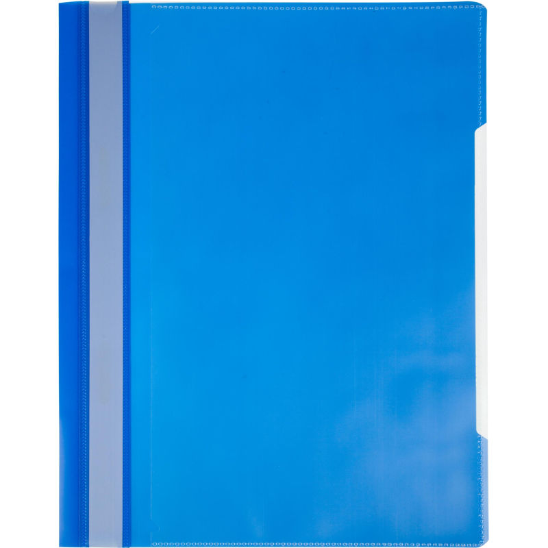 Папка скоросшиватель с прозрачным карманом на лицевой стороне, цвет синий, ф.А4, Россия. Используется для сшивания и хранения перфорированных документов. Надежный скоросшиватель фиксирует как отдельные листы, так и перфофайлы. На лицевой стороне имеется прозрачный карман форматом А4 для идентификации содержимого папки. Папка выполнена из полипропилена 160 микрон, верхний лист 120 микрон.
