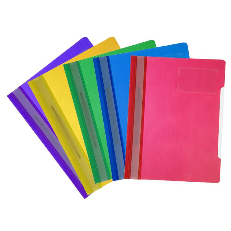 Скоросшиватель используется для хранения различного рода документации, для ведения документооборота, систематизации договоров, других важных бумаг. Форма А4. Папка изготовлена из мягкого пластика с гладкой фактурой. Плотность верхнего листа 120 мкм, плотность нижнего листа папки 160 мкм. С прозрачной верхней обложкой. Пластиковый корешок с белой полосой для размещения информации. Вместимость - 100 листов стандартной плотности. Цвет - ассорти. 10 штук в упаковке. Папка-скоросшиватель обладает на верхнем листе карманом для визитки, что позволяет Вам использовать визитку Вашего партнера рядом с документами .