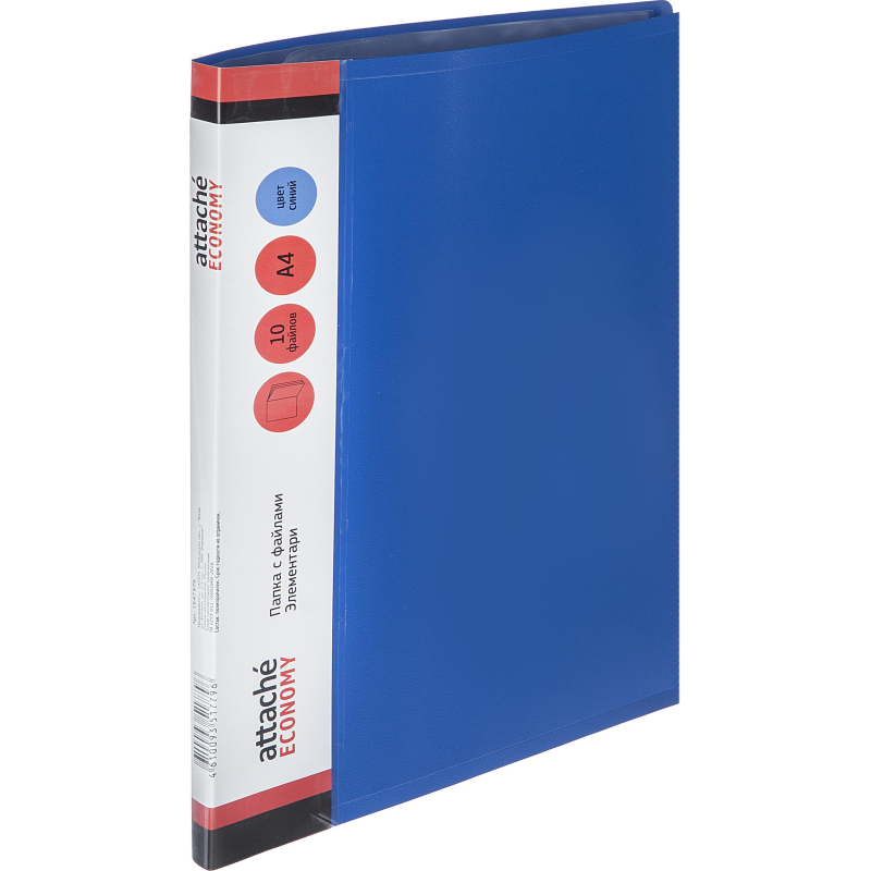 Папка с файлами Attache Economy предназначена для хранения материалов и документов формата А4, требующих упорядоченности и наглядного обзора: отчетов, презентаций, коммерческих и персональных портфолио. Изготовлена из жесткого высококачественного пластика толщиной 0,5 мм черного цвета, имеет 10 прозрачных вкладышей, а также карман на корешке для сменной этикетки. Вмещает до 20 листов стандартной плотности. Преимуществом файловой папки является надежная сохранность документов в отличном состоянии без предварительной перфорации. Плотность файлов 30 мкм.