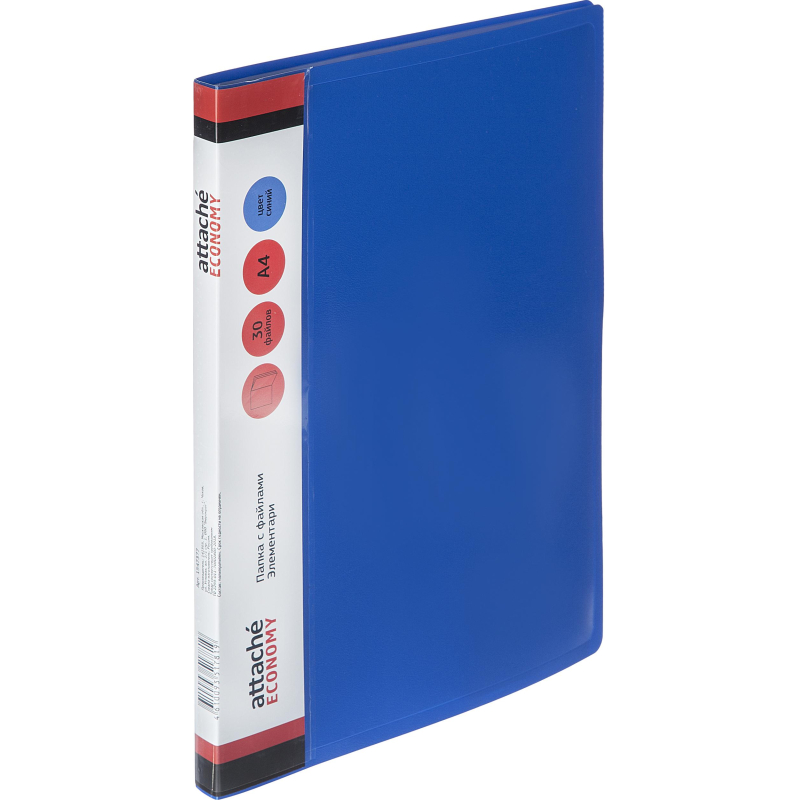 Папка с файлами Attache Economy предназначена для хранения материалов и документов формата А4, требующих упорядоченности и наглядного обзора: отчетов, презентаций, коммерческих и персональных портфолио. Изготовлена из жесткого высококачественного пластика толщиной 0,5 мм черного цвета, имеет 30 прозрачных вкладышей, а также карман на корешке для сменной этикетки. Вмещает до 60 листов стандартной плотности. Преимуществом файловой папки является надежная сохранность документов в отличном состоянии без предварительной перфорации. Плотность файлов 30 мкм.
