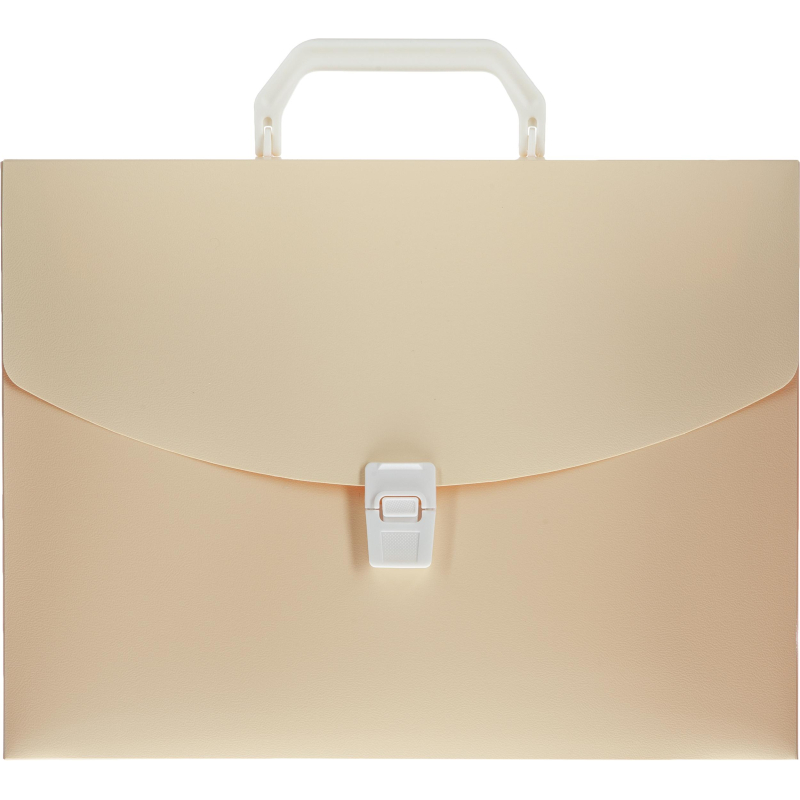 Портфель формата А4 из высококачественного пластика с текстурой поверхности "песок", на которой не видно отпечатков пальцев и мелких царапин. Предназначен для транспортировки документов. Цвет портфеля - желтый коллекция Акварель. Портфель вмещает до 350 бумажных листов. Оснащен замком и ручкой . Размер - 335х230х35мм, толщина - 0.7 мм.