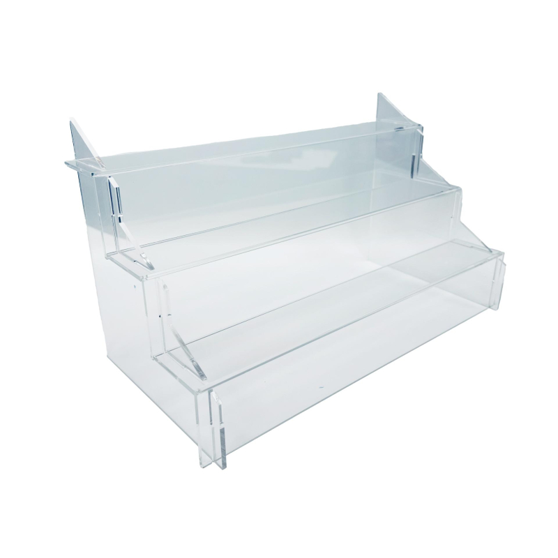 Настольная сборная трехъярусная подставка Лесенка. Позволяет быстро и удобно разместить товары на минимальной площади витрины или полки. Изготовлена из прозрачного акрилового оргстекла. Поставляется в защитной пленке в разобранном состоянии. Размеры: 180х316х155 мм (ВxШxГ), ступень 50х50 мм (ВхД), цвет прозрачный.