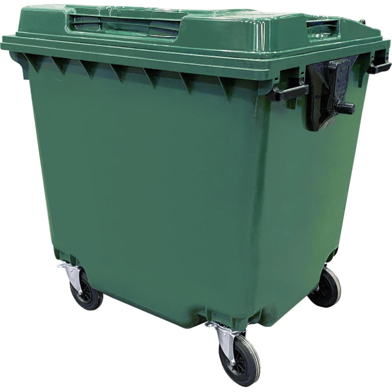Контейнер-бак мусорный ТехПолимерЭко 1100 л пластиковый на 4-х колесах с крышкой зеленый. Пластиковые евроконтейнер 1100 л предназначен для сбора и хранения бытовых и промышленных отходов. Имеет небольшой вес в сравнении с металлическими контейнерами, вместительный, мобильный. Контейнер оснащен: - четыре колеса (2 с тормозом, 2 без тормоза); - цапфы со стальными сердечниками; - надежные крепления крышки; - усиленное место захвата гребенкой. Благодаря использованию качественных первичных материалов полиэтилен низкого давление (HDPE), контейнер не подвержен коррозии и прекрасно подходит для эксплуатации в российских климатических условиях. Контейнер имеет такие преимущества, как: - устойчив к УФ-лучам; - ударопрочный; - устойчив к химически агрессивной среде. Высота: 135.2 см. Размер ШхГ: 136.5х110 см. Диаметр колес: 200 мм. Цвет: зеленый. Вес: 49 кг. Температура внешней среды: от - 40° до +50°С. Максимальная загрузка: не менее 440 кг.