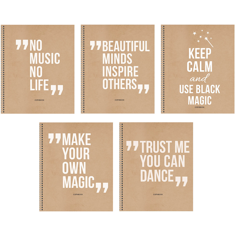 Тетрадь общая А5 формата на спирали толщиной 48 листов без полей. Обложка изготовлена из экологичного крафт-картона плотностью 230 г/кв.м, который устойчив к воздействию извне, легкий и прочный, отделана рельефной краской Air Glaze. Внутренний блок - офсетная белая бумага (100% белизны) в клетку плотностью 60 г/кв.м. Размер 200х167 мм. Тетрадь дополнена мотивирующими фразами на каждый день. Тетрадь предназначена для учеников средних и старших классов, студентов вузов.Внимание! Товар поставляется в различных вариантах дизайна/цвета без возможности выбора.