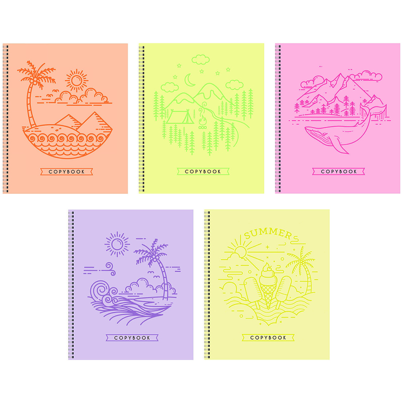 Тетрадь общая А5 формата на спирали толщиной 96 листов без полей. Обложка изготовлена из мелованного картона плотностью 210 г/кв.м, отделана пантонной печатью и дополнена выборочным лакированием отдельных элементов дизайна. Внутренний блок - офсетная белая бумага (100% белизны) в клетку плотностью 60 г/кв.м. Размер 200х175 мм. Тетрадь предназначена для учеников средних и старших классов, студентов вузов.Внимание! Товар поставляется в различных вариантах дизайна/цвета без возможности выбора.