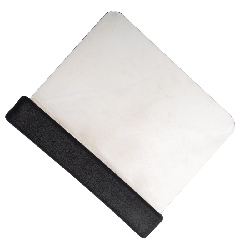 Скребок для теста METAL CRAFT KW-V I BLK. Жесткий металлический скребок с прямой кромкой. Предназначен для деления теста, разравнивания поверхности теста, удаления остатков теста и муки с рабочей поверхности. Изготовлен из нержавеющей стали. Снабжен пластмассовой ручкой.