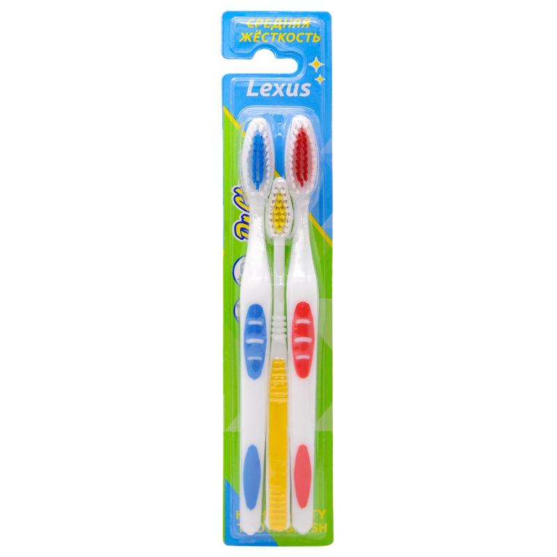 Зубная щетка Доктор Клин Лексус - семейный набор из 3-х штук, изготовлена с применением нейлонового волокна. Долговечная нейлоновая щетина, в отличие от других, не так быстро расщепляется, не ломается и долго сохраняет изначальную форму. Щетина с совершенным закруглением вершин, не повреждая эмали, эффективно чистит зубы, бережно массирует десны и оказывает превосходный гигиенический эффект на всю полость рта. Состав: нейлон, полимерные материалы. Товар относится к ценовому сегменту "суперэконом". Имеет упрощенные характеристики и более простую упаковку. Отвечает основным требованиям потребления.