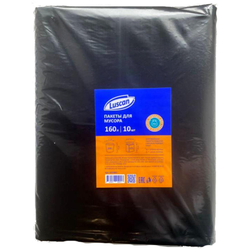 Мешки для мусора на 160 л Luscan черные (ПВД, 65 мкм, в рулоне 10 шт, 90х120 см) Применяются для хранения и транспортировки строительного и производственного мусора, бытовых и продуктовых отходов. Данные пакеты подходят для уборки придомовой территории ЖКХ, сбора листьев и растительного мусора при сезонной уборке улиц, бульваров, скверов, парков. Изготовлены из полиэтилена высокого давления (ПВД) плотностью 65 мкм, объем 160 литров. Упакованы по 10 пакетов в рулоне. Цвет черный. Размер (ШхД): 90х120 см.
